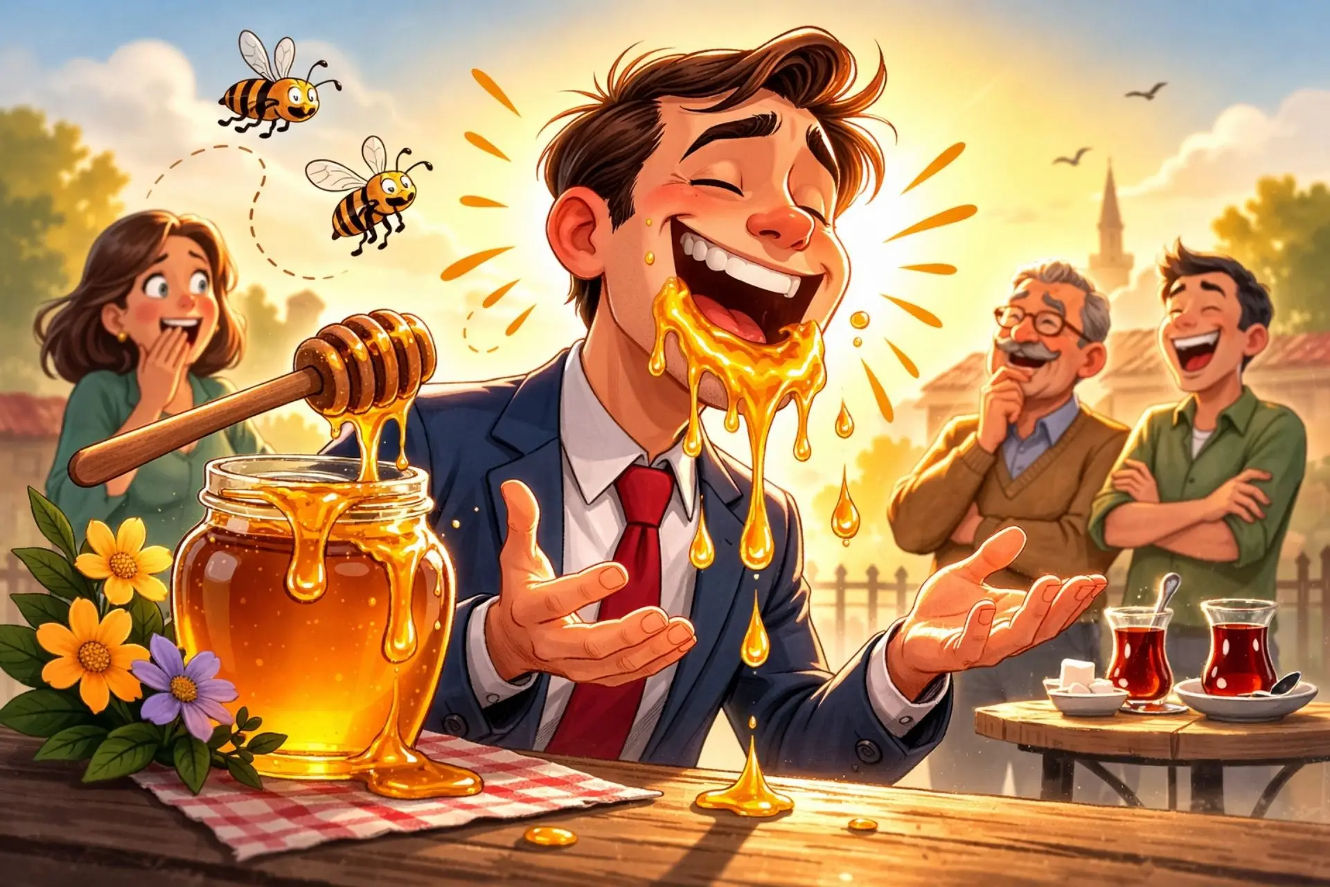 • Deyim: Ağzından bal damlamak (akmak)